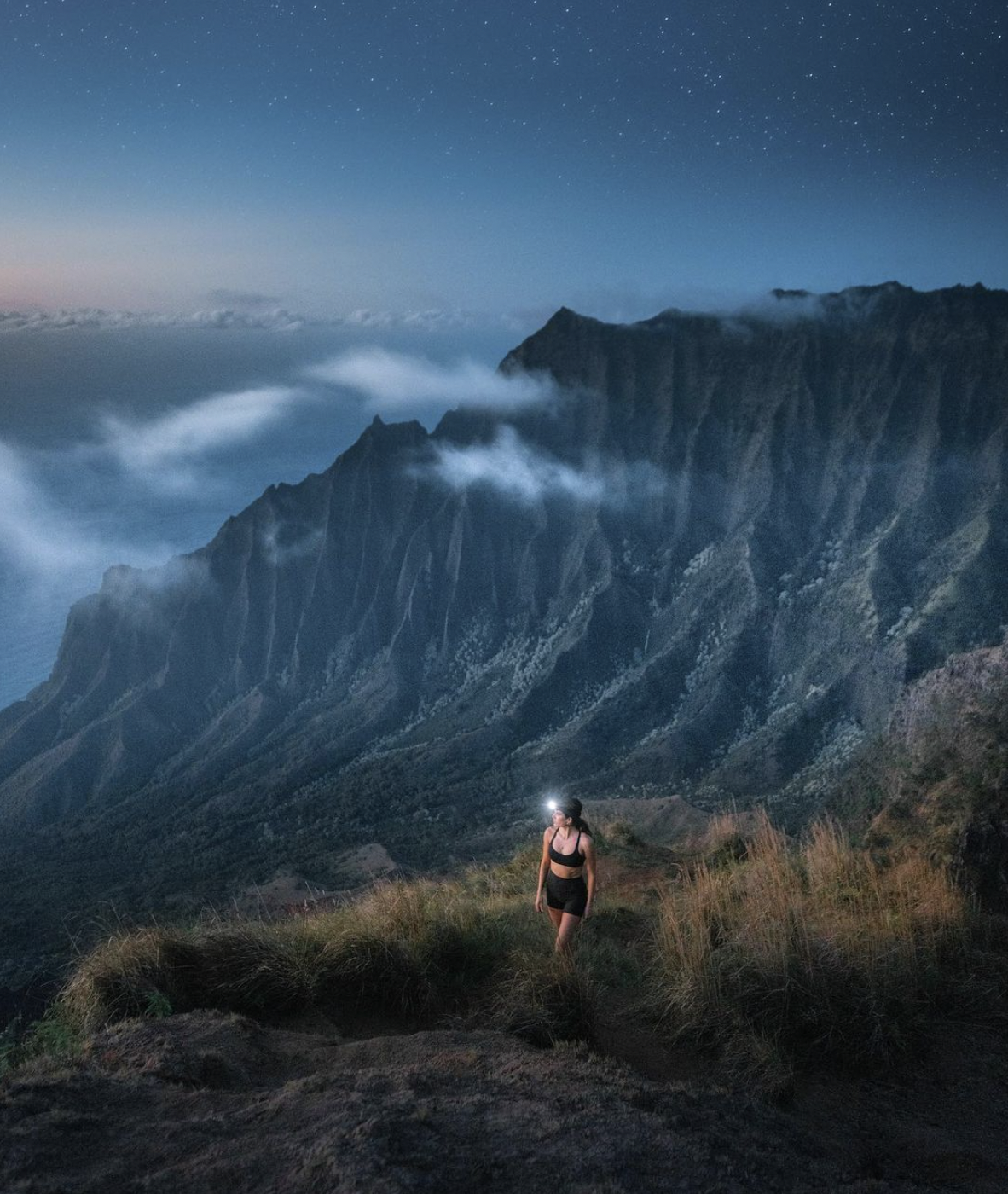 Hiking post sunset along a ridge in Hawaii. Photo by Ryan Resatka / Instagram.