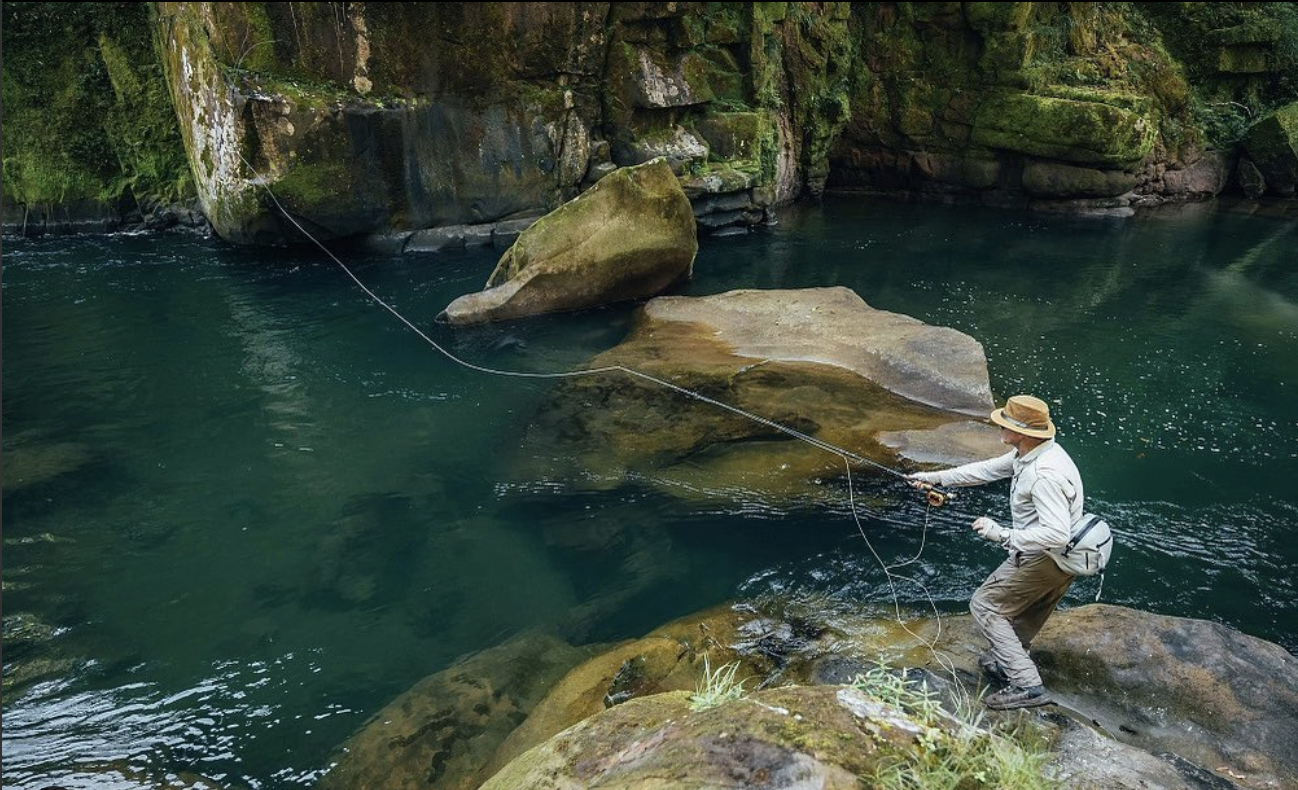 As part of the Tsimane Helicopter Fishing program, a traveler fishes for dorado, pacu and other jungle species in the crystal clear headwaters of the Tsimane system in Bolivia. Photo by Fly Water Travel.