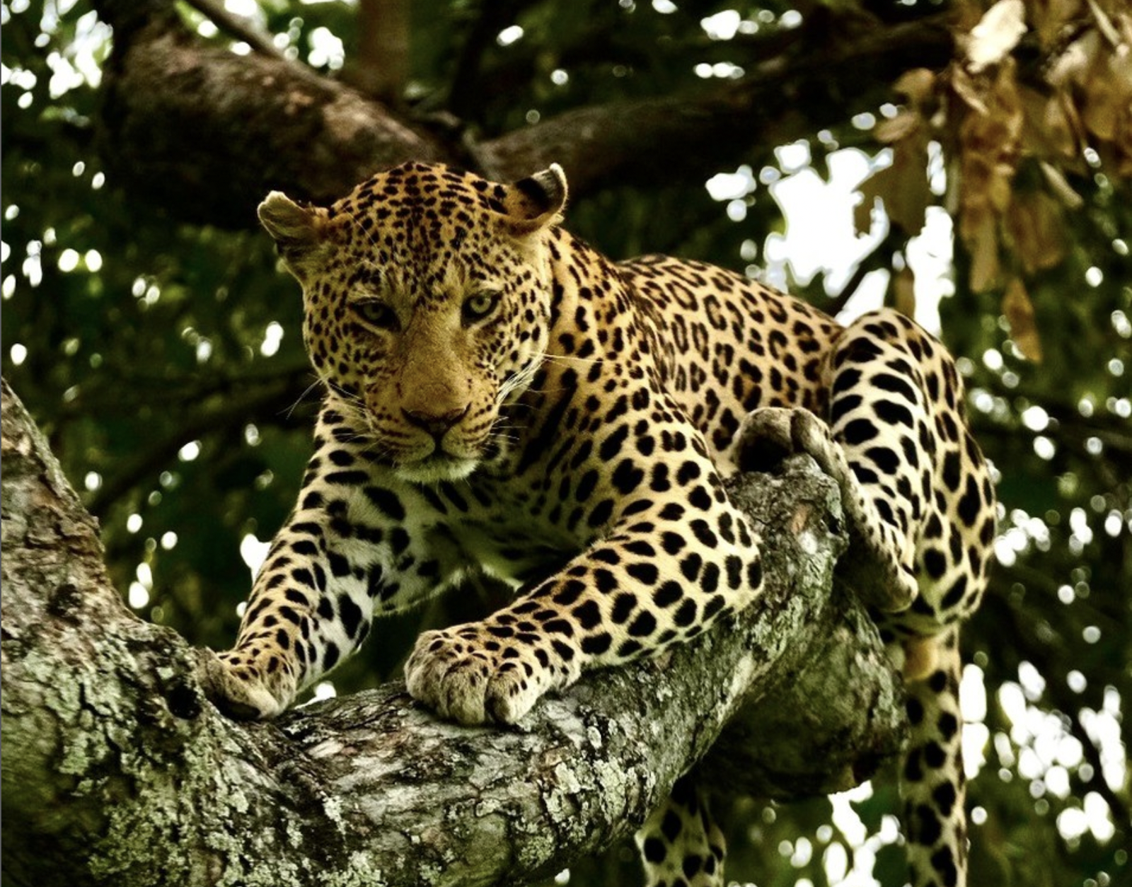 A male leopard lounges on a branch in Moremi Game Reserve, Okavango Delta, Mambo Camp, Botswana. Photo by Scott Hyman | Instagram