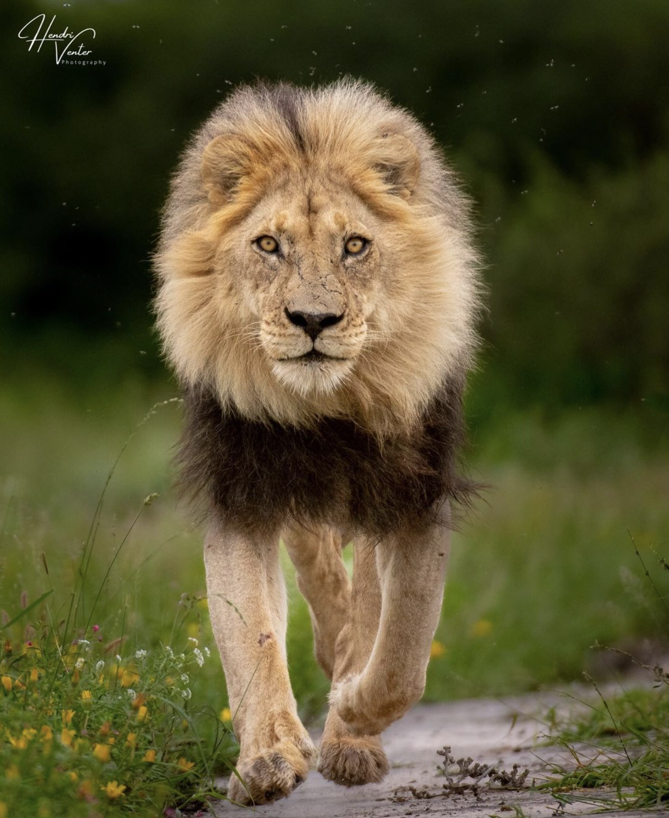 A Kalahari lion on a mission to protect his territory against an intruding young male. Photo by Hendri Venter
