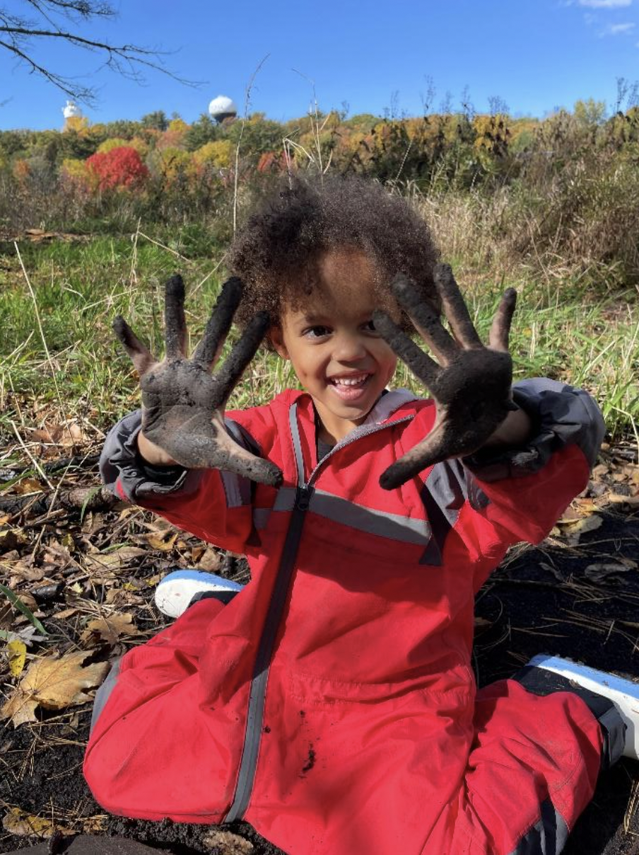 A member of ALNC’s Cottontail group exploring the mud. Courtesy of Aldo Leopold Nature Center
