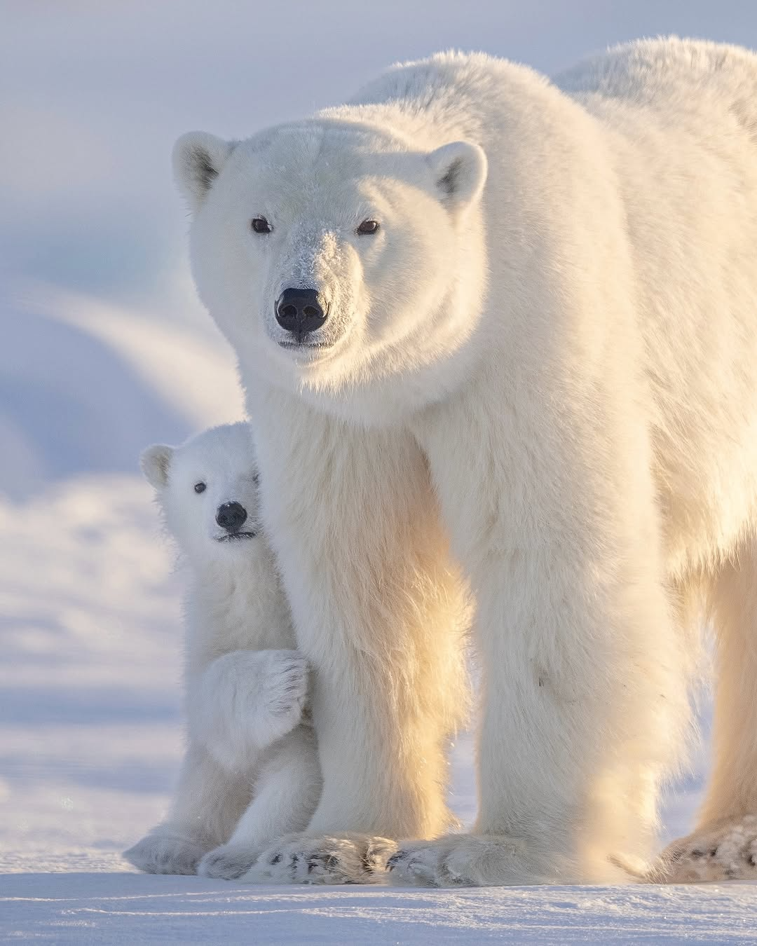 Mother polar bear and cub; Svalbard, Norway. (Photo: Piet van den Bemd)