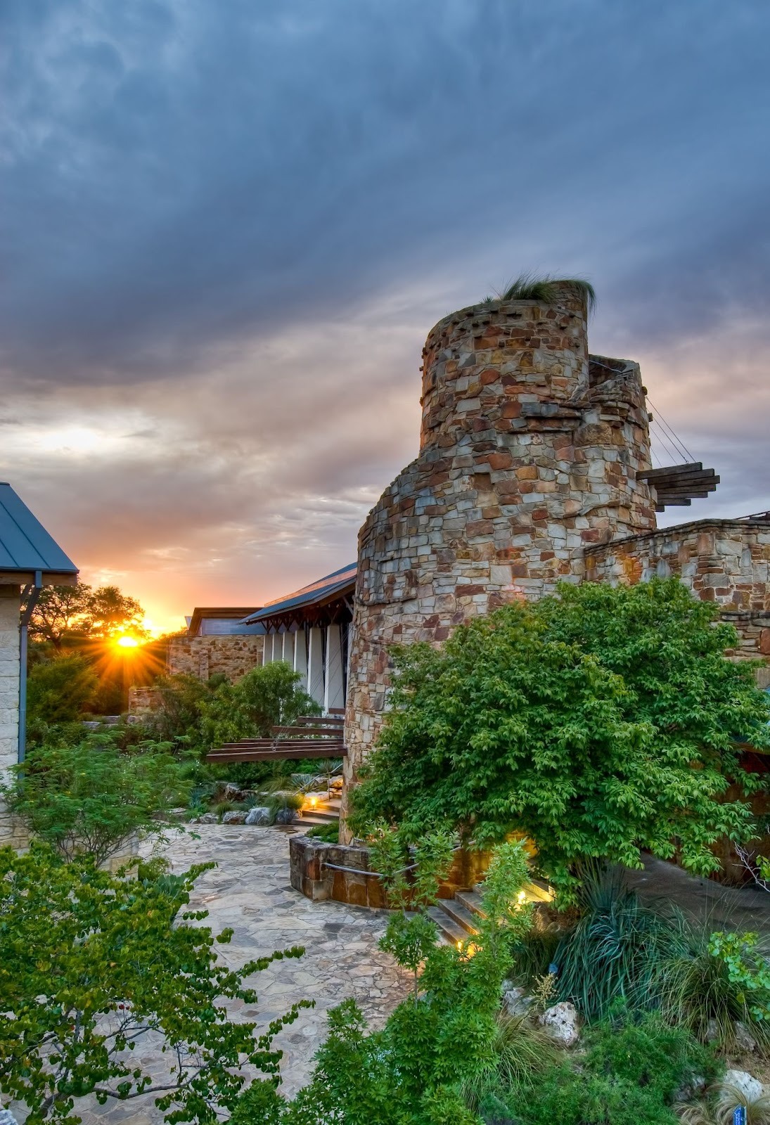 Sunset behind the observation tower. (Photo: Courtesy of The Wildflower Center)